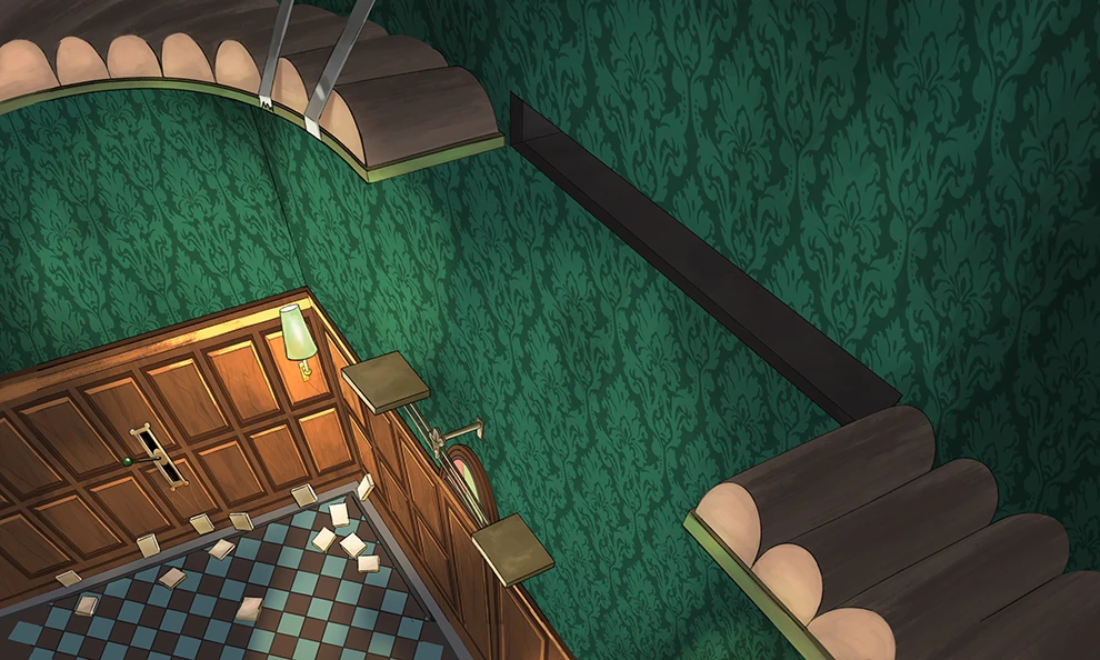 Маленькая комната, из которой состоит вагон, имеет деревянные стены с зелёными обоими с узором на них. Пол же сделан из шахматной чёрно-белой плитки. На одной стороне вагона есть окна с красными занавесками, а на другой - лампы с зелёными абажурами, освещающие комнату, а также рычаг. Деревянный мост прикреплен к стене, часть его уже треснула и закреплена скотчем.