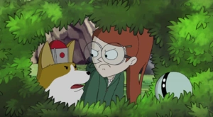Тюльпана с закрытыми глазами открывает дверь, в надежде, что она ведёт домой, но вместо этого перед ней предстаёт красивый солнечный пейзаж у берега реки с собаками корги, на котором были сооружения в древнегреческом стиле. Весёлая Половина спрашивает, это ли её дом, на что получает отрицательный ответ. Вскоре корги на вершине кучи камней дует в рог, этим предвещая приход короля. Король сидит на подстилке, которую держат корги. Приближаясь к Тюльпане и Раз-Разу, он представился Аттикусом — правителем, а также объединителем кардиганов и пемброков. После их вступления, Аттикус предлагает экскурсию на троих по своему королевству. Тюльпана восхищается тем, как король продвигает себя в обществе.