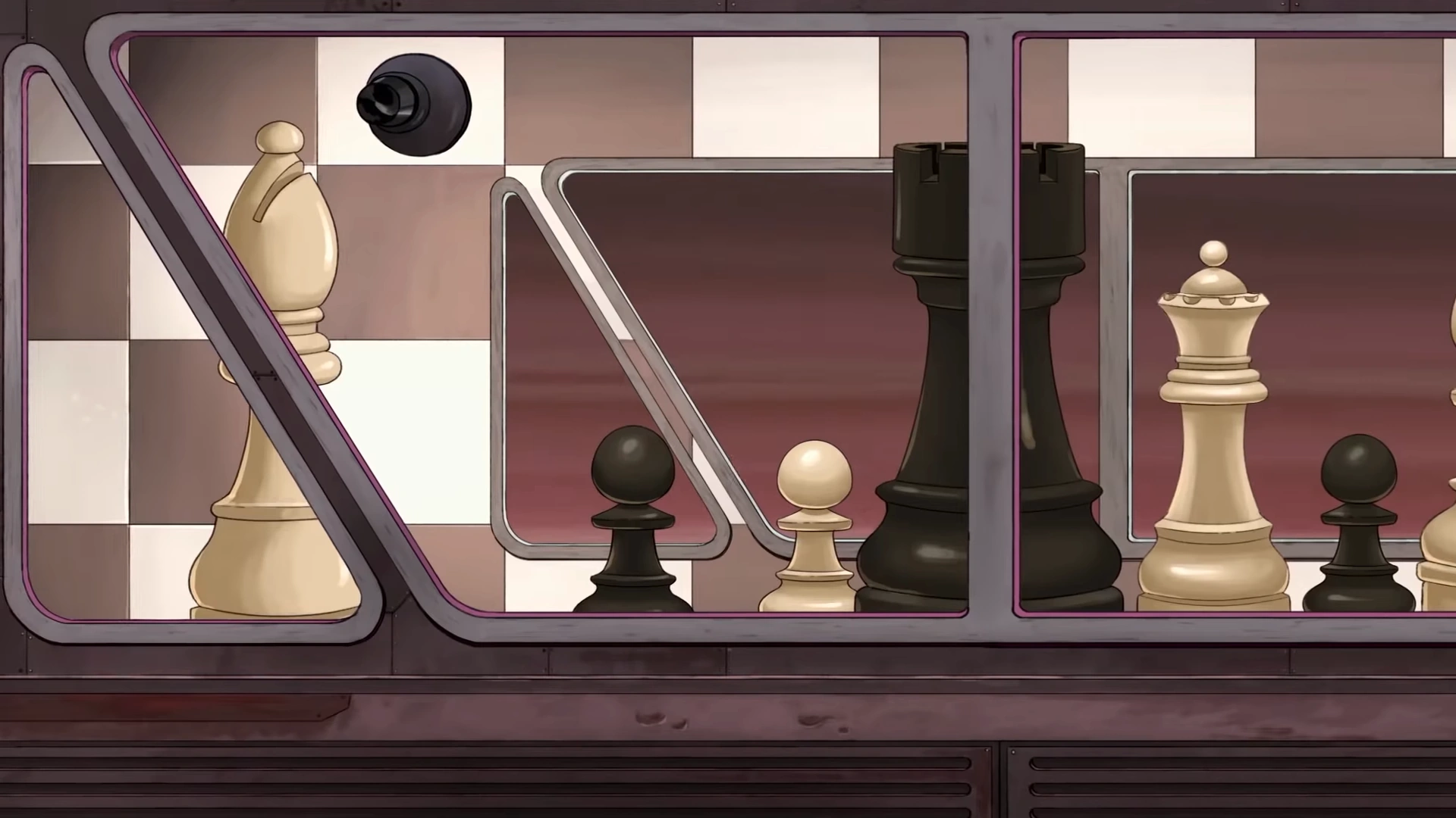 The room has a chessboard decoration on the walls and is occupied by various chess pieces: