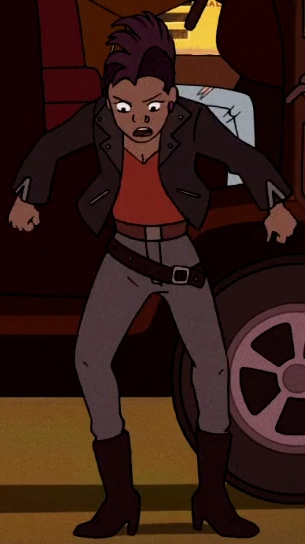 A punk girl of African decent with a purple mohawk. Her outfit mostly consists of black, grey, and red. The punk immediately breaks up with Ryan when they arrive at the gas station.