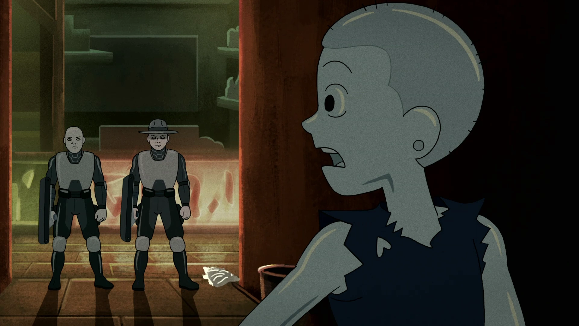 - At one point the Reflection Police were to dive into one of the slug people's glass eye. This was cut by Owen Dennis, who thought the episode had too many eye bits, and Madeline Queripel was squeamish about things happening to eyes.[2]