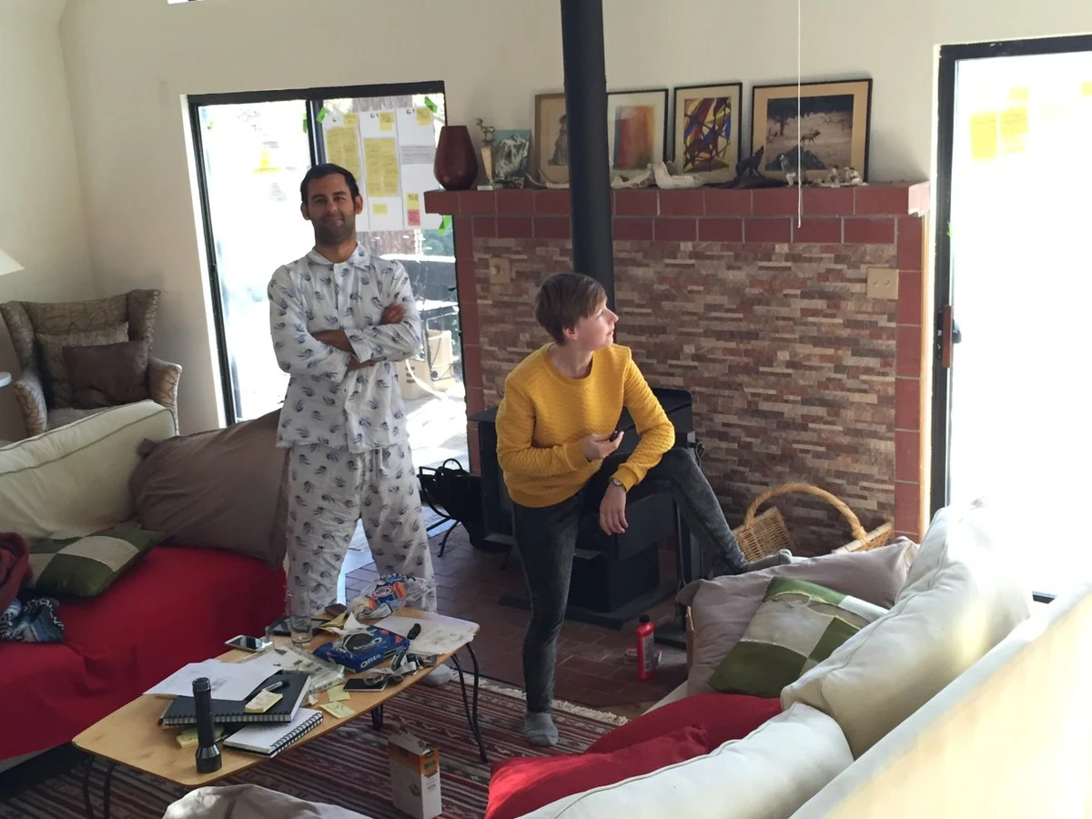 Cole Sanchez and Madeline Queripel, shortly after completing work on the beat board.